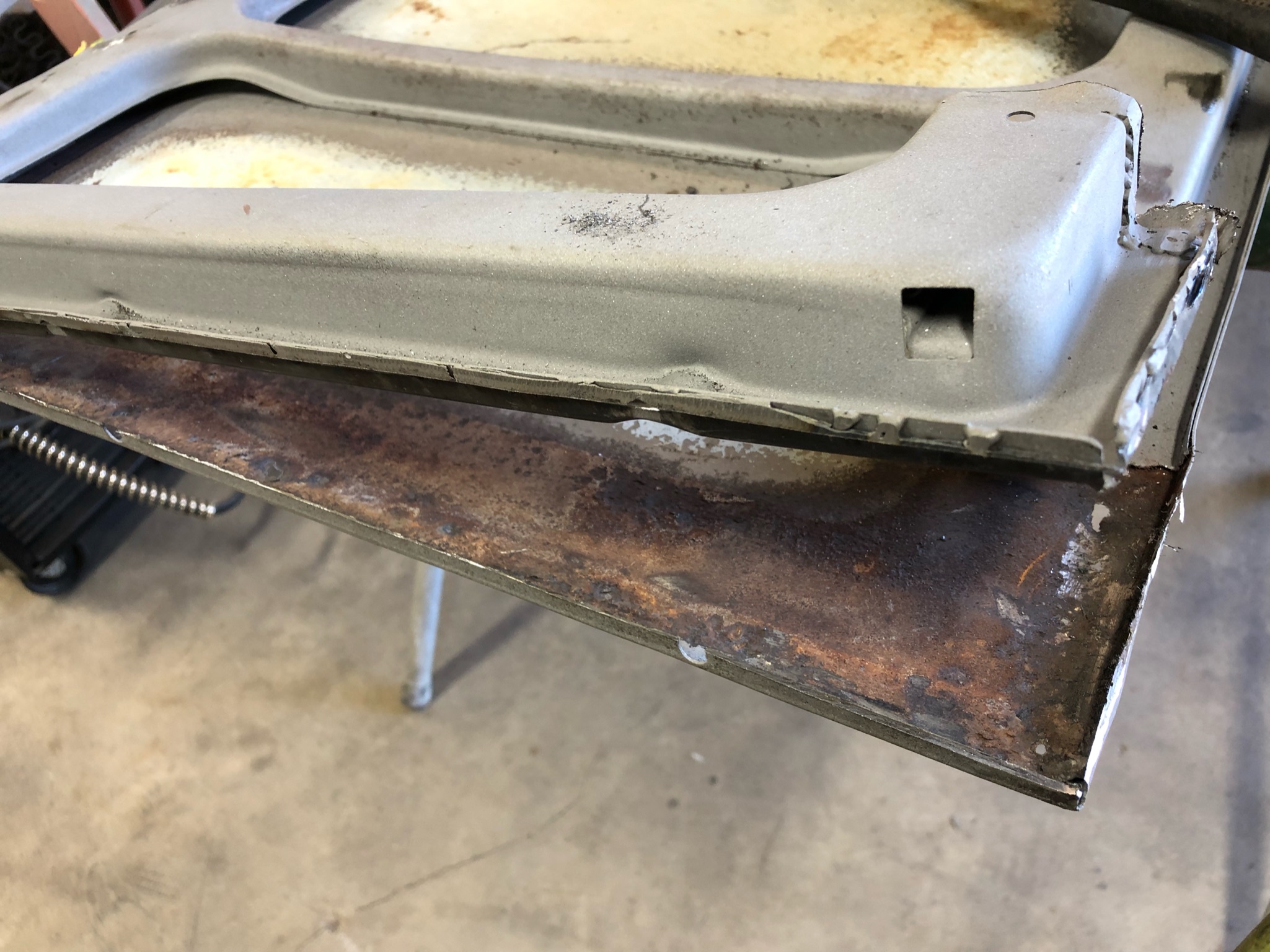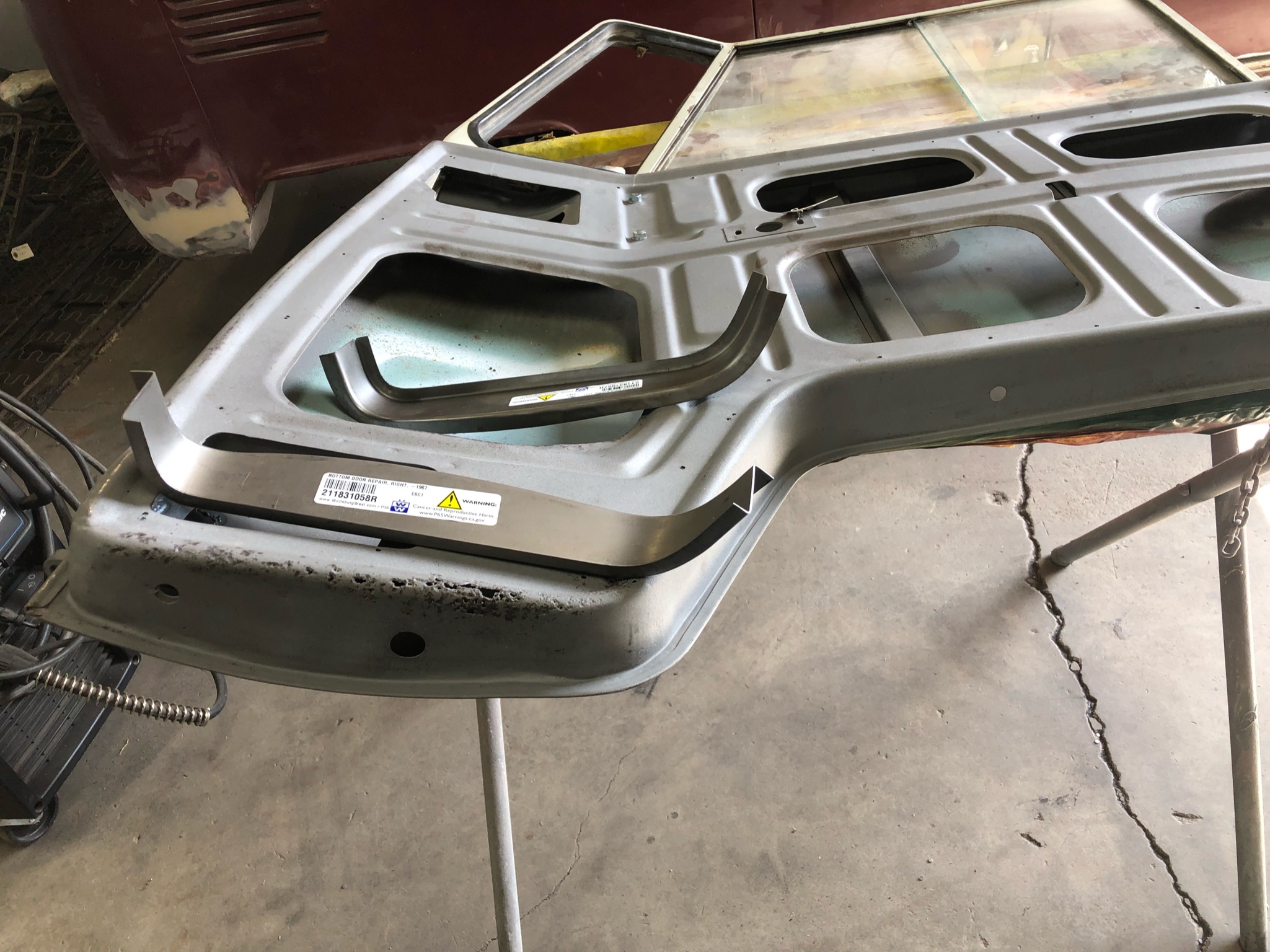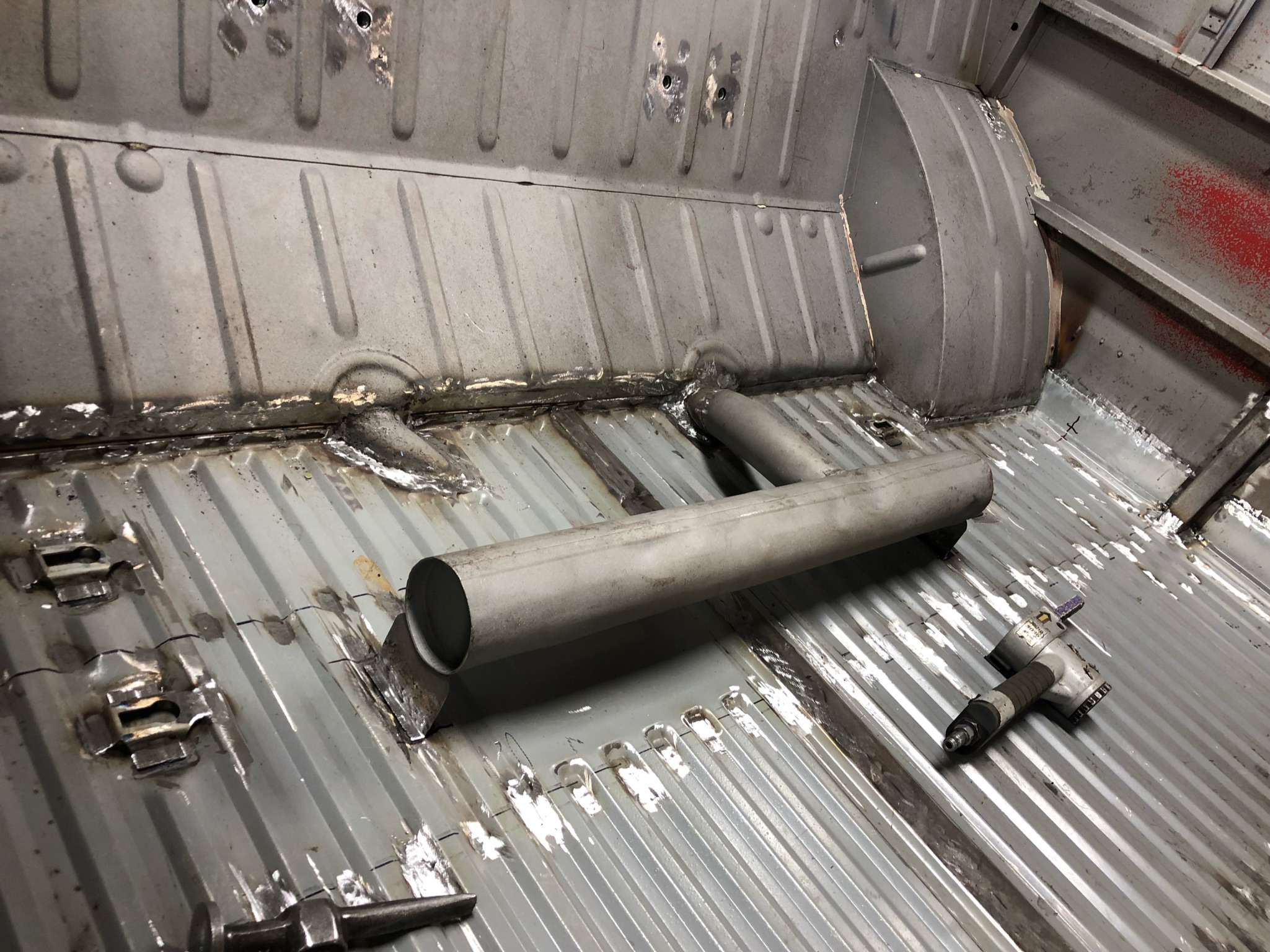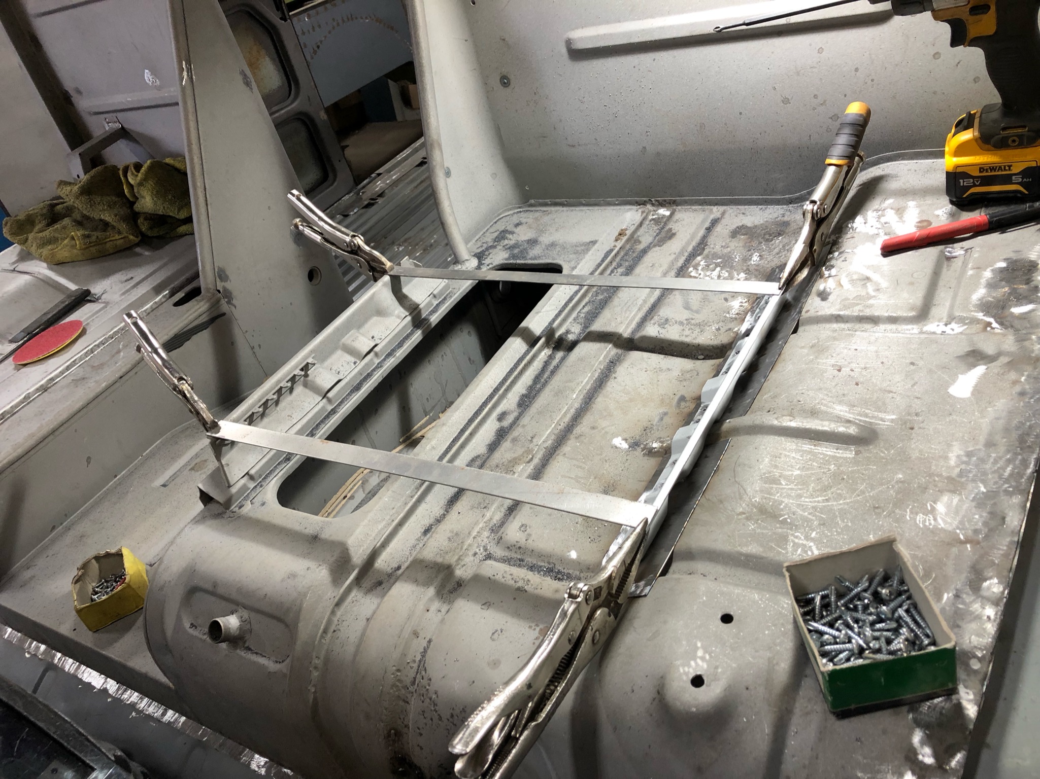 Rust repair continues with cargo door bottoms, seat mount, heater tube, etc