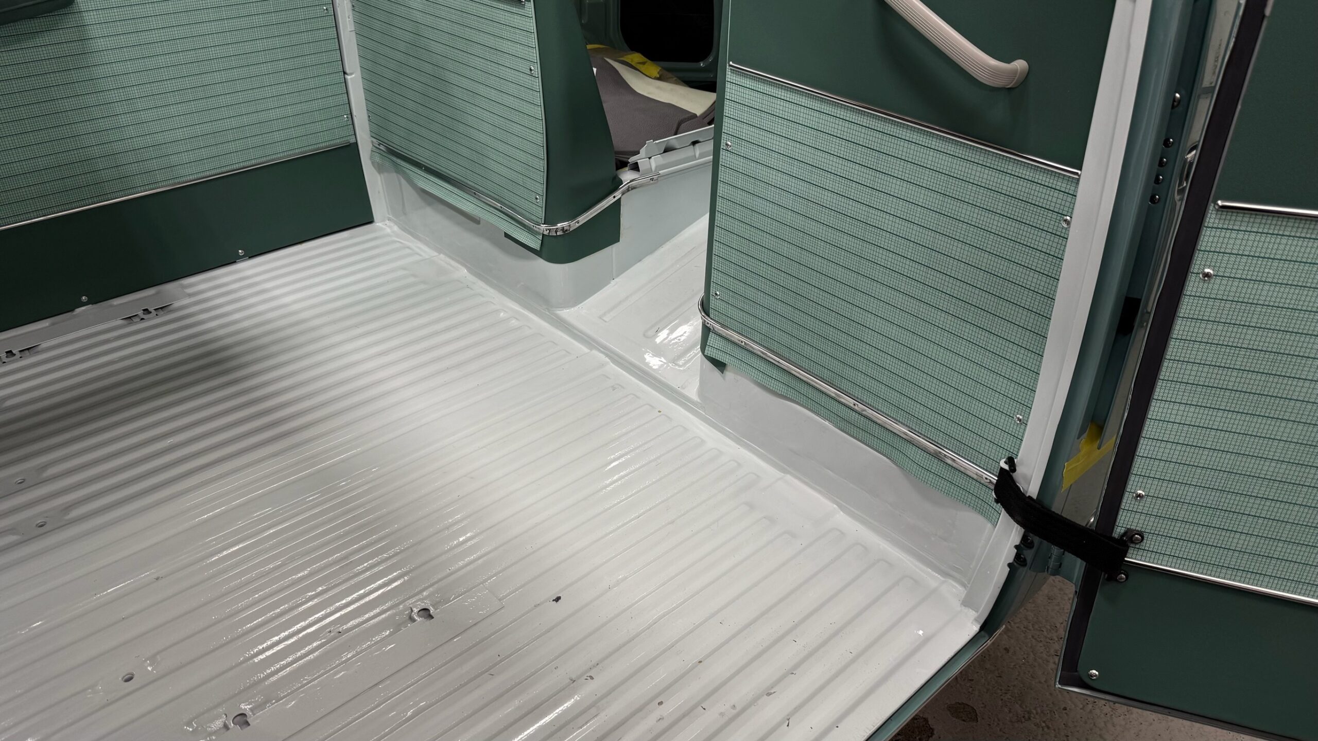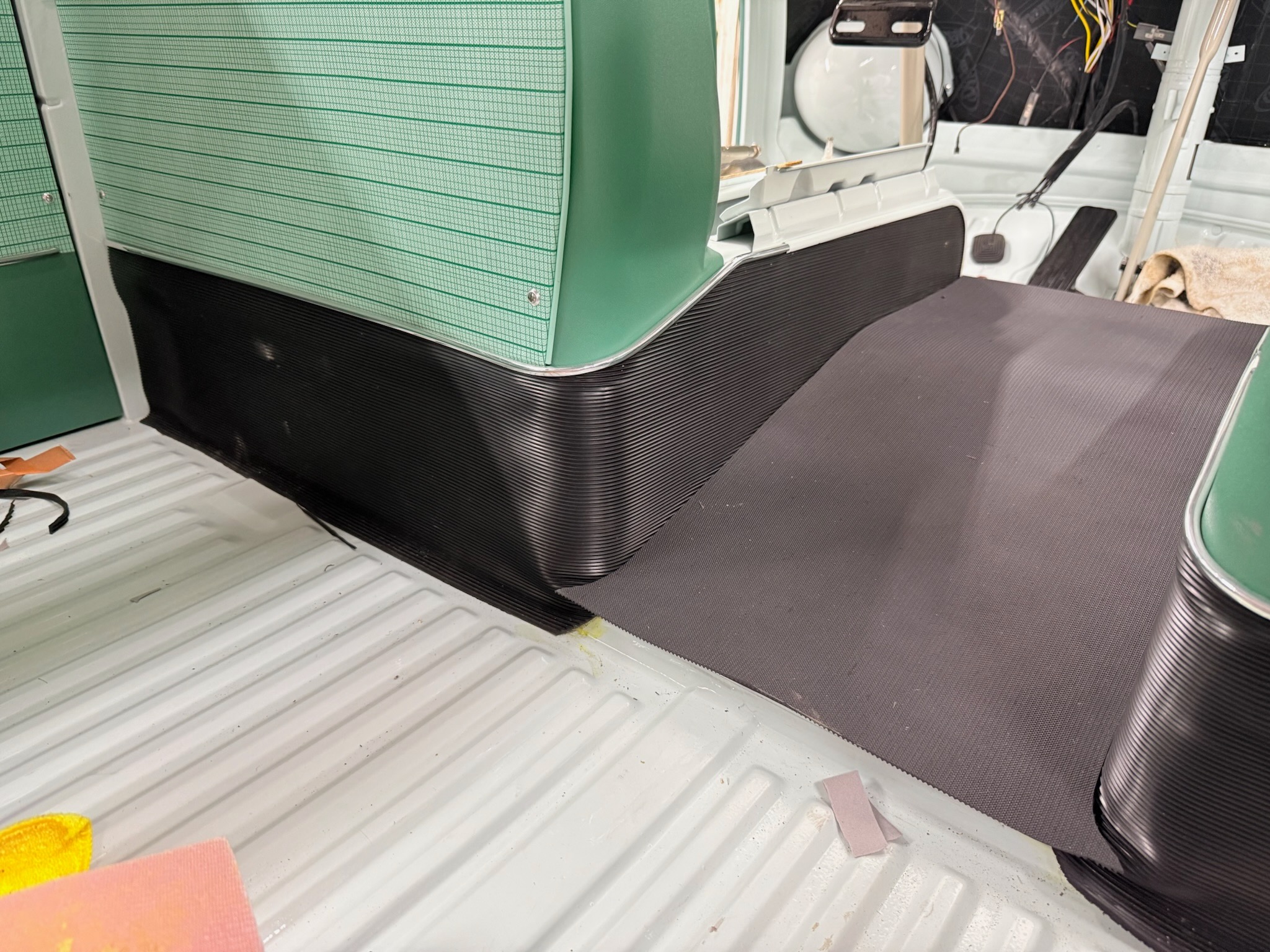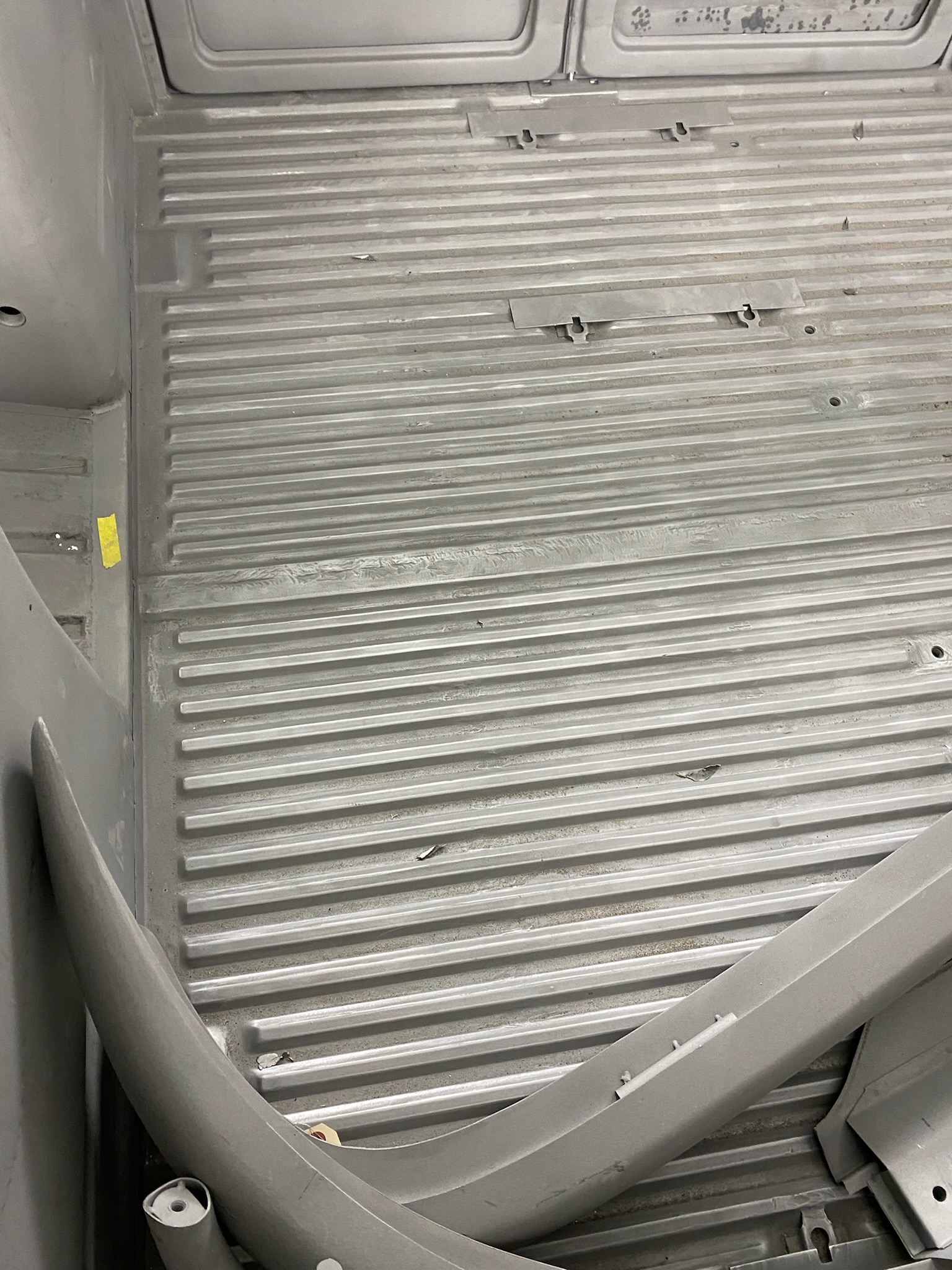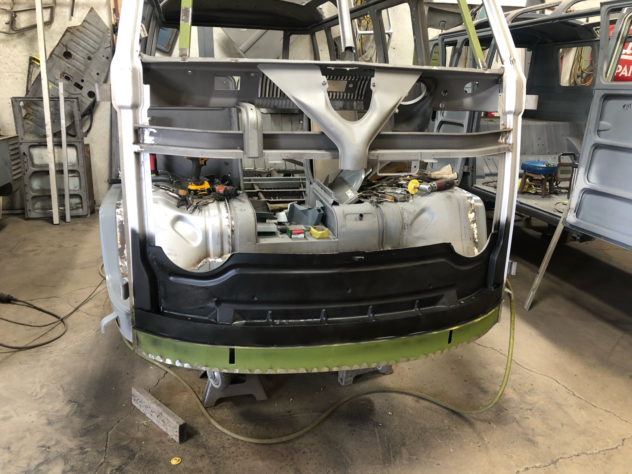 Rust repair continues with cargo door bottoms, seat mount, heater tube, etc