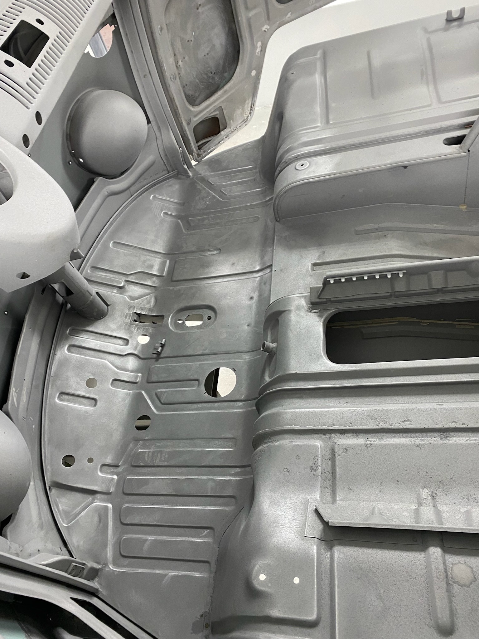 Main body in bare after metal work and rust repair.