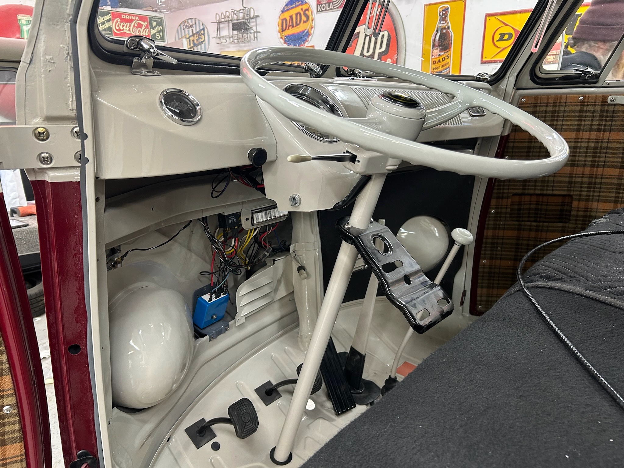 This survivor 21 Window Deluxe Bus arrived at the shop for a full mechanical restoration, and partial cosmetic restoration the preserved the survivor ascetic of the Bus. We also added a one-off custom camper interior.